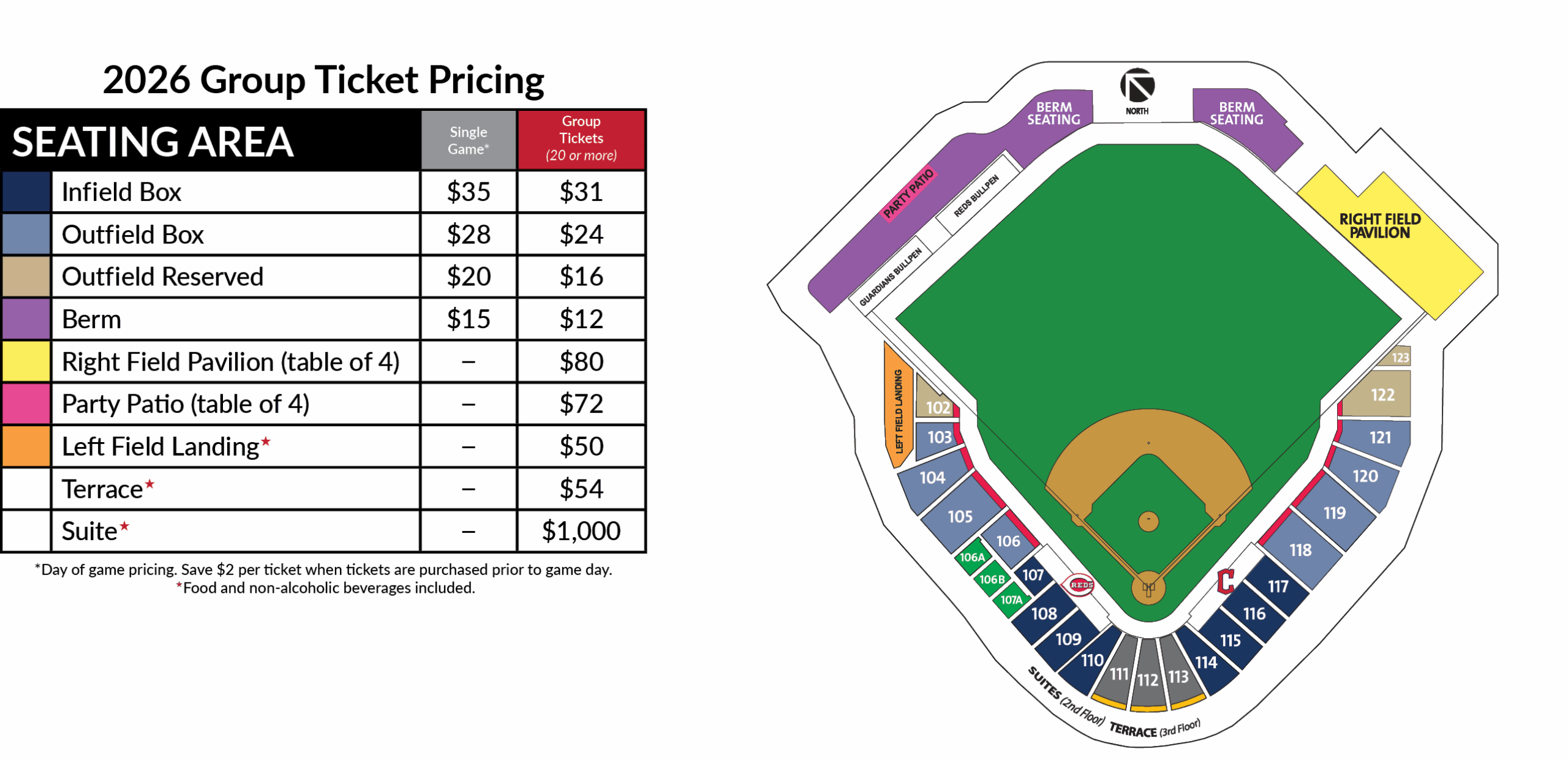 Right Field Pavilion seating available for single game purchase beginning January 31, 2026.